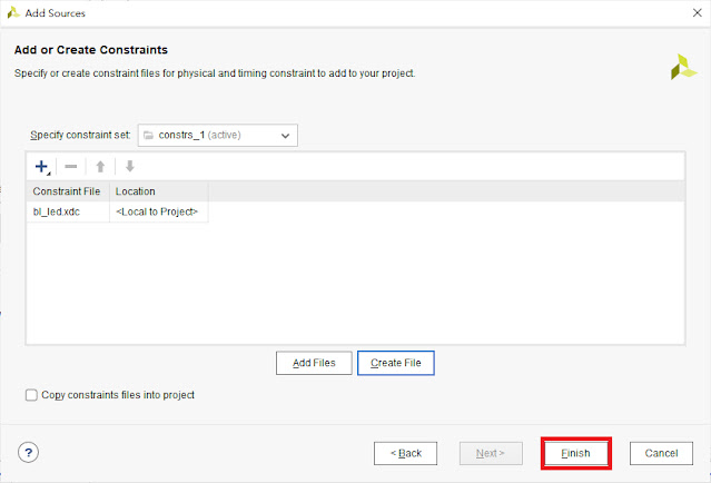 22. 在"File name:"欄位中,輸入constraint檔案名稱,這裡輸入"bl_led",輸入完成按"OK"。